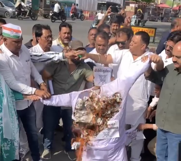 सड़क पर पुतला दहन और कांग्रेस का वॉकआउट
