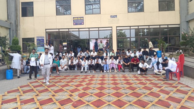 Ratlam: Resident doctors of the medical college, enraged over non-payment of salaries, staged a protest in front of the emergency OPD